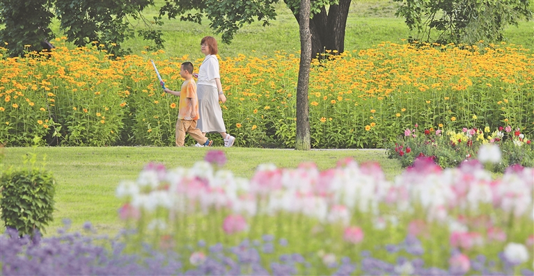 夏日的太陽島風(fēng)景區(qū),花團(tuán)錦簇,百余個品系的花卉爭奇斗艷,幽香陣陣,吸引大批游客來此打卡。