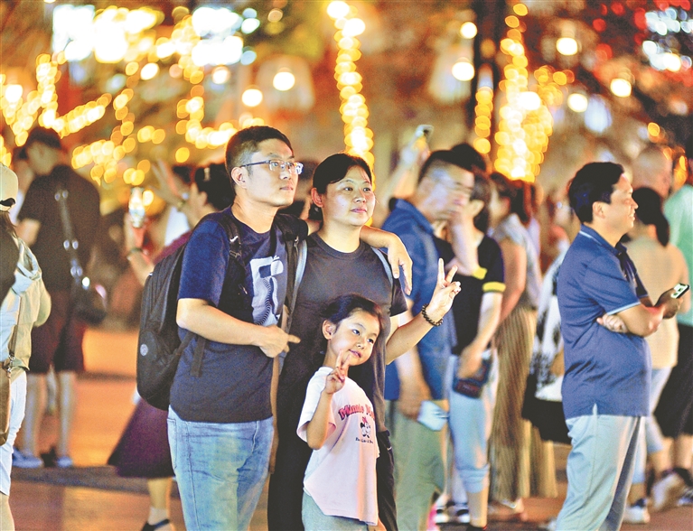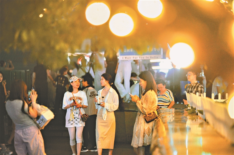 冰城夏夜,涼爽宜人,哈爾濱建筑藝術(shù)廣場(chǎng)上人來(lái)人往,非常熱鬧。許多游客在觀賞美景,享受清涼。廣場(chǎng)周邊的樹木、水池等處安裝了美麗的燈飾,夜幕降臨這些彩燈紛紛點(diǎn)亮,勾勒出一個(gè)迷人的夜晚。一位湖南游客說(shuō),上午就來(lái)參觀過(guò),晚上又來(lái)了,很涼快,風(fēng)景也很美,拍攝了很多好看的圖片發(fā)到朋友圈,親友們紛紛點(diǎn)贊。
