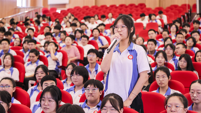 泰來一中學(xué)生在現(xiàn)場向北京大學(xué)學(xué)子提問