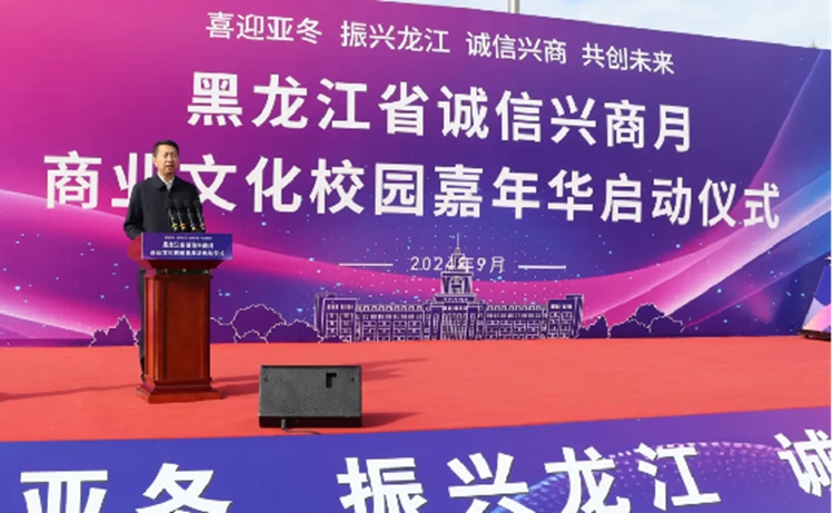 哈爾濱商業(yè)大學(xué)黨委書記趙廣致辭。他表示,哈爾濱商業(yè)大學(xué)將以“黑龍江省誠信興商月”活動為契機,吸引更多有識之士和市場主體,更加自覺地以文化力量滋養(yǎng)新時代文明實踐,投身中國特色社會主義偉大事業(yè)。學(xué)校將堅持守正創(chuàng)新,賡續(xù)中華文脈,為推進中國式現(xiàn)代化龍江實踐凝心聚力,不斷鑄就中華文化新輝煌;立足學(xué)科專業(yè)特色,發(fā)揮智庫人才優(yōu)勢,強化教育鏈、人才鏈、產(chǎn)業(yè)鏈、創(chuàng)新鏈耦合聯(lián)動,增強服務(wù)地方經(jīng)濟社會高質(zhì)量發(fā)展能力;抓好主責(zé)主業(yè),錨定立德樹人根本任務(wù),聚焦服務(wù)新質(zhì)生產(chǎn)力發(fā)展,培養(yǎng)支撐區(qū)域經(jīng)濟發(fā)展的高素質(zhì)人才,為奮力開創(chuàng)黑龍江高質(zhì)量發(fā)展新局面貢獻智慧和力量。