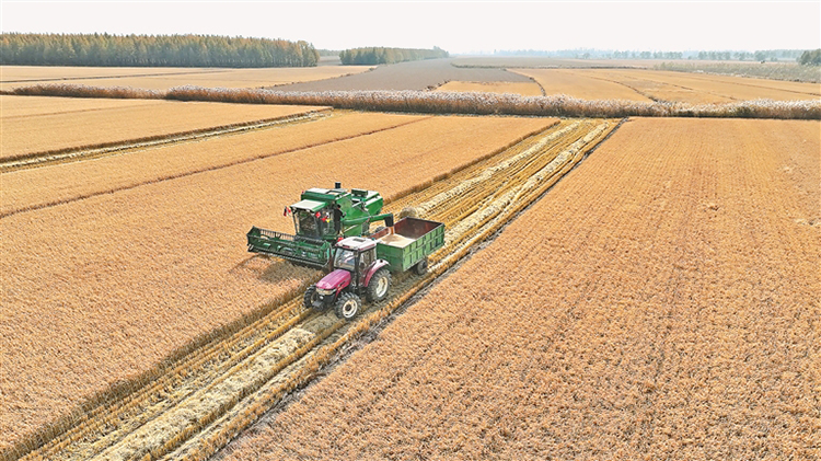 秋風(fēng)送爽,東極大地盡是豐收美景。稻田里,金黃色的波浪翻滾,預(yù)示著又一個(gè)糧食滿倉的好年景。