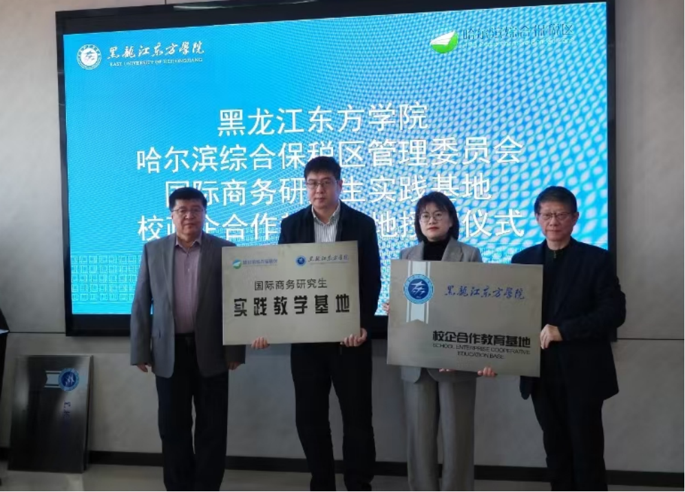 黑龍江經(jīng)濟網(wǎng)訊(記者李凌雪)11月20日,哈爾濱綜合保稅區(qū)與黑龍江東方學院舉行校政企產(chǎn)教研發(fā)展戰(zhàn)略合作協(xié)議簽約授牌儀式。哈爾濱綜合保稅區(qū)副主任張旭與黑龍江東方學院副校長程延江共同為國際商務研究生實踐基地、校企合作教育基地授牌并簽署合作協(xié)議。