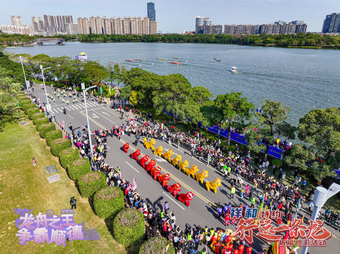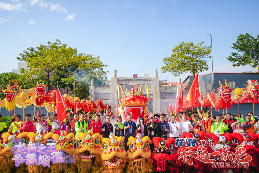 解鎖龍文化,體驗(yàn)新玩法;打造新民俗,巡游好歡樂?!靶羞\(yùn)一條龍”祈福巡游活動是順德全新打造的龍舟文化新民俗,現(xiàn)已成功舉辦兩屆。巡游以“拜龍母”“龍眼點(diǎn)睛”等民俗儀式為核心,凝練“行龍運(yùn),接龍?!钡脑⒁?,讓市民游客近距離感受民俗活動的獨(dú)特魅力。