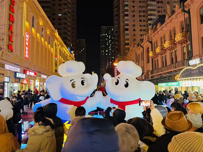 除了“白象”標(biāo)志性小象IP格外吸睛之外,因其與“對(duì)象”諧音的巧妙設(shè)計(jì),也吸引著往來行人紛紛駐足。雪雕前人潮涌動(dòng),不少市民游客在“對(duì)象”前合影留念。這一創(chuàng)意不僅為游客增添別樣的溫暖與歡樂,也在社交媒體掀起一陣“找對(duì)象”的熱潮?;顒?dòng)期間,“對(duì)象雪雕走紅哈爾濱”的話題登上熱搜榜。不少網(wǎng)友調(diào)侃:“這就去哈爾濱找對(duì)象?!币灿腥吮硎荆赐晷∠笱┑?,感覺爾濱的冬天都充滿了浪漫的氣息。