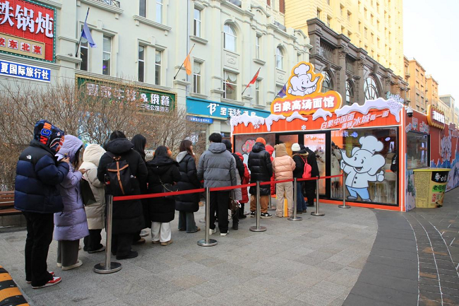 白象中國面,溫暖冰城每一面。去年12月31日至今年1月5日,白象高湯面館空降哈爾濱中央大街,用一碗高湯面開啟暖心跨年新體驗(yàn)。期間,巨型白象創(chuàng)意雪雕“對(duì)象”火熱出圈,多重互動(dòng)玩法和試吃活動(dòng)吸引大量游客打卡嗨玩,為冰城游客和廣大消費(fèi)者獻(xiàn)上一場(chǎng)別開生面的冰雪盛宴。
