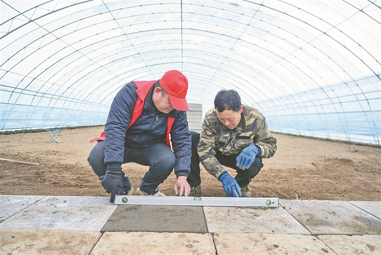 黨員幫助農(nóng)戶(hù)改造大棚。