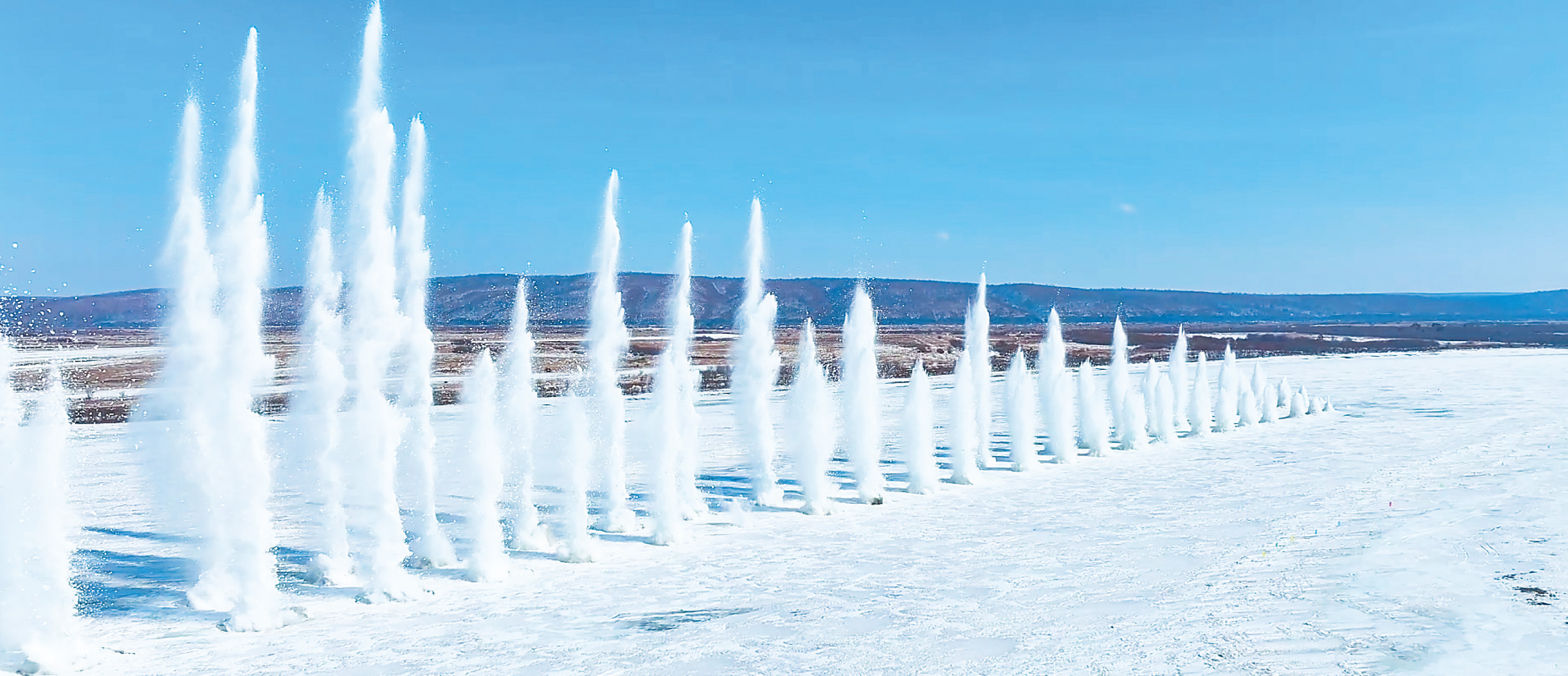 短短幾秒的時(shí)間,航標(biāo)號(hào)262到264之間的黑龍江江面上,便瞬間形成了幾十米高的冰霧柱和三公里長的破碎段,場面非常壯觀?!敖?jīng)前期凌汛會(huì)商,今春黑龍江上游發(fā)生冰凌卡塞的可能性較大,所以我們決定對(duì)黑龍江呼瑪鎮(zhèn)上江島段和鷗浦鄉(xiāng)三合段兩個(gè)主要區(qū)域?qū)嵤┤L4800米的主動(dòng)防凌爆破作業(yè)?!焙衄斂h水務(wù)局副局長王軍說。據(jù)悉,鷗浦鄉(xiāng)三合江段1800米的防凌爆破作業(yè)將于2日實(shí)施。