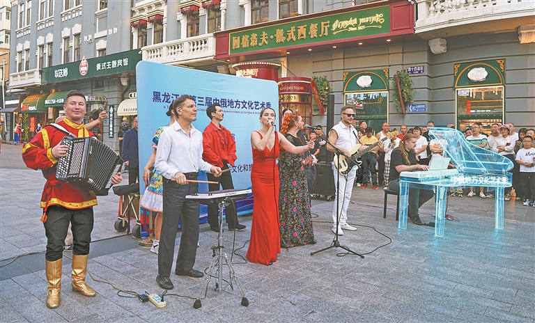 6月22日晚,由省文旅廳主辦的黑龍江省第三屆中俄地方文化藝術季——“街頭藝術之遇見俄羅斯”演出活動在中央大街啟動。來自俄羅斯的表演團隊,通過歌唱、舞蹈、音樂等多種藝術形式,為觀眾呈現了精彩演出。