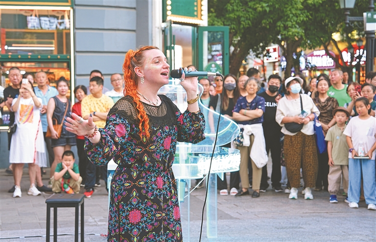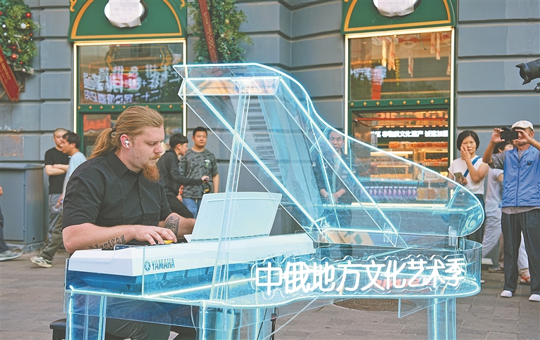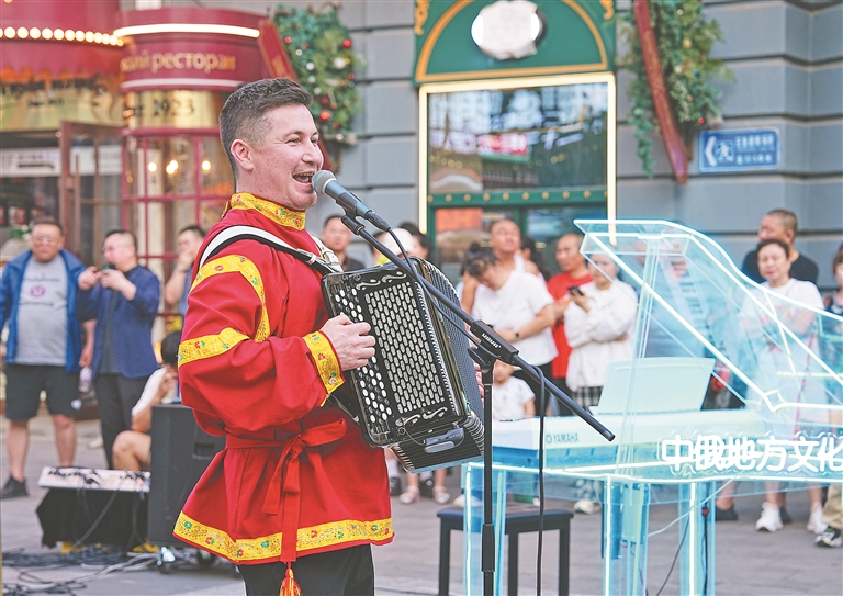 中央大街一隅,熱情洋溢的俄羅斯演員或奏響悠揚的巴揚樂曲,讓充滿異域風情的旋律在空氣中流淌;或以靈動的舞姿演繹俄羅斯文化,用熱情奔放的節(jié)奏點燃現場氣氛。市民和游客近距離感受俄羅斯文化的魅力。