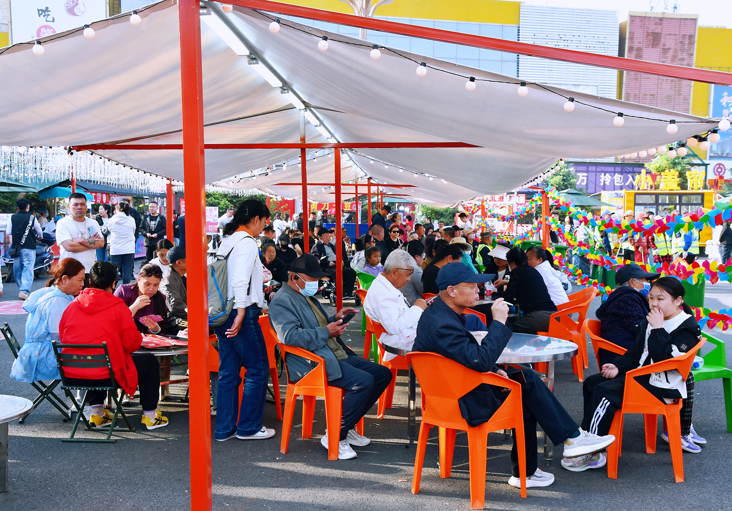 據(jù)悉,此次小餅節(jié)共分為美食鑒賞、演藝互動、娛樂休閑三大展區(qū)。在美食鑒賞區(qū),共設(shè)百余個攤位,涵蓋燒烤、炒菜、鹵貨、特色小吃、冷飲,不少攤位前都排起了長隊(duì),各式各樣的美食香氣四溢,讓人垂涎欲滴。