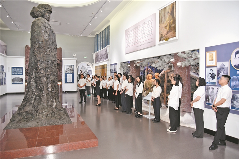 紀(jì)念館內(nèi),講解員深情朗誦《盧溝曉月》,將人們的思緒帶回“盧溝橋事變”那個(gè)山河破碎、狼煙四起的夜晚。隨后,大家跟隨講解員參觀了“黑土英魂陳列”,在一件件珍貴文物與歷史畫(huà)卷中重溫崢嶸歲月,感悟英烈精神。