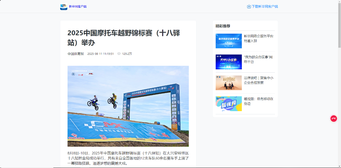 ——主題宣傳聲勢強勁,上央媒、亮品牌。聚焦生態(tài)建設、產業(yè)發(fā)展、先進典型等,深挖工作亮點,全媒體發(fā)稿量超3800篇,其中國家級媒體310余篇、省級媒體270余篇?!?025中國摩托車越野錦標賽舉辦》《小熊下樹!哎喲喲下得挺快》等作品登上央視新聞、新華社、光明網、學習強國、中國綠色時報等國家級平臺;2025中國摩托車越野錦標賽、文藝演出等活動通過新華社現(xiàn)場云等平臺直播,總點擊量超300萬次,“十八驛站”知名度與美譽度顯著提升。