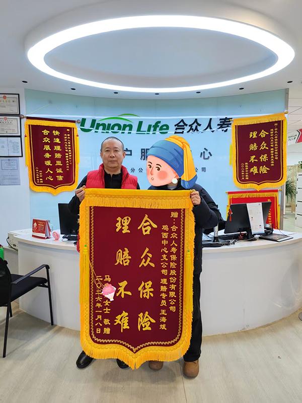 2026年1月8日,M女士心懷感激之情前來公司,親手送上錦旗一面。錦旗上醒目地寫著“合眾保險,理賠不難”。這簡短的幾個字,不僅是對合眾人壽高效理賠服務的高度認可與贊揚,更是一份沉甸甸的信任與鼓勵。它激勵著合眾員工在今后的工作中,繼續(xù)堅守專業(yè)精神,秉持客戶至上的理念,為每一位客戶提供更加優(yōu)質、貼心的保險服務,讓保險真正成為人們生活中的堅實保障。(合眾人壽)