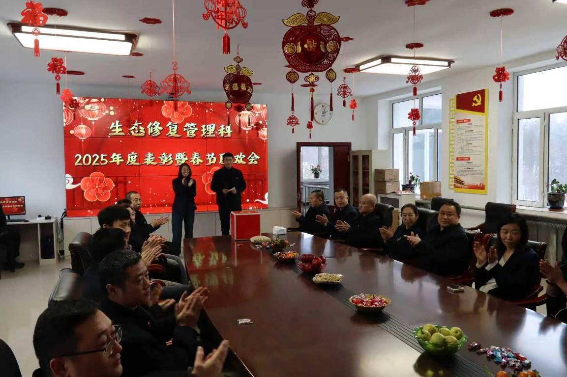 活動在歡快的音樂中拉開帷幕。主持人深情回望2025年,這一年,科室全體同仁深耕生態(tài)修復(fù)一線,頂風(fēng)冒雨、攻堅克難,圓滿完成各項工作任務(wù),用實干守護綠水青山,用堅守詮釋生態(tài)人的初心使命。生態(tài)修復(fù)管理科科長于召民為活動致辭,既肯定了科室全體干部職工過去一年的辛勤付出,也為2026年工作指明方向、注入動力,贏得全場陣陣掌聲。