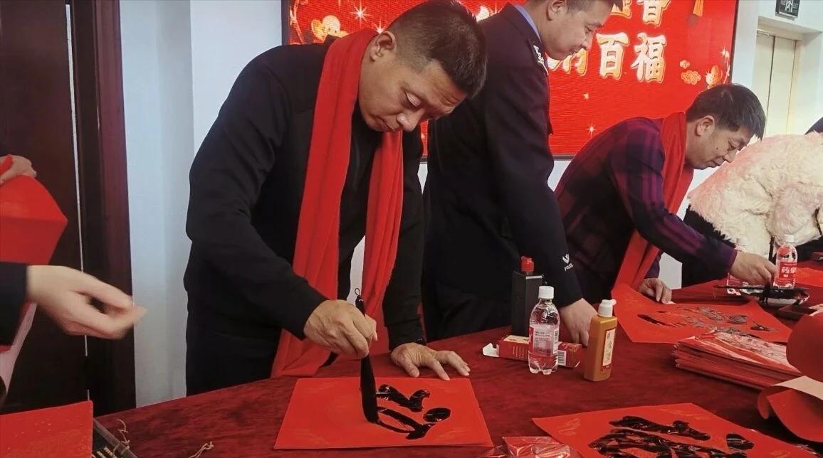 局政委王秀東出席活動儀式并致辭,政工室主任劉鐵主持活動,市書法家協(xié)會名家與該局書法愛好者齊聚一堂,為堅守崗位的民輔警送上新春祝福與文化滋養(yǎng)?;顒蝇F場暖意融融、墨香四溢。大紅宣紙整齊鋪展,筆墨硯臺依次排開,書法家們凝神聚力、揮毫潑墨,筆鋒或遒勁有力、或溫婉流暢。一副副寓意深遠的春聯躍然紙上,一個個飽滿圓潤的“?!弊殖休d著美好期許,既彰顯了中華傳統(tǒng)文化的魅力,又融入了公安工作的使命擔當。