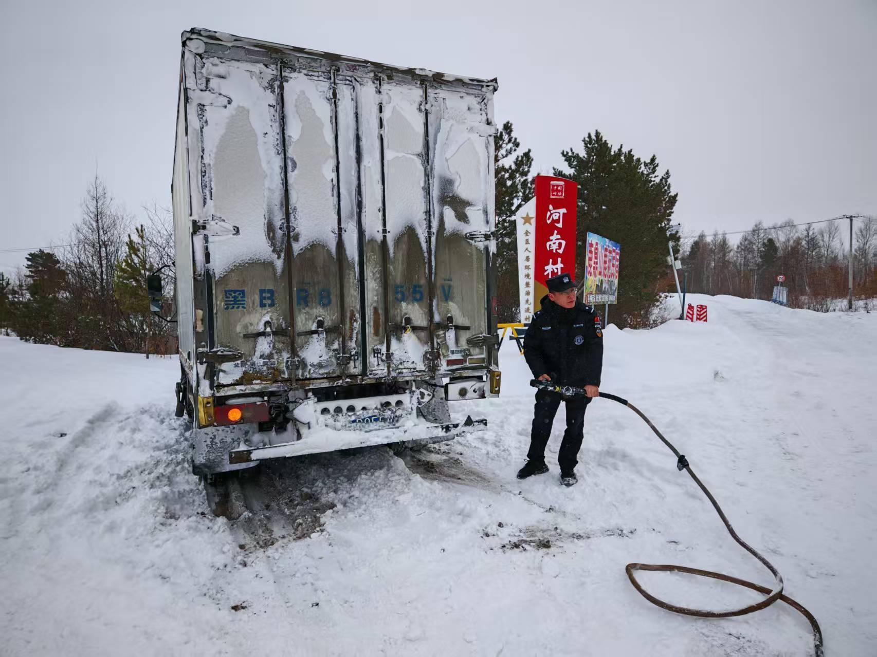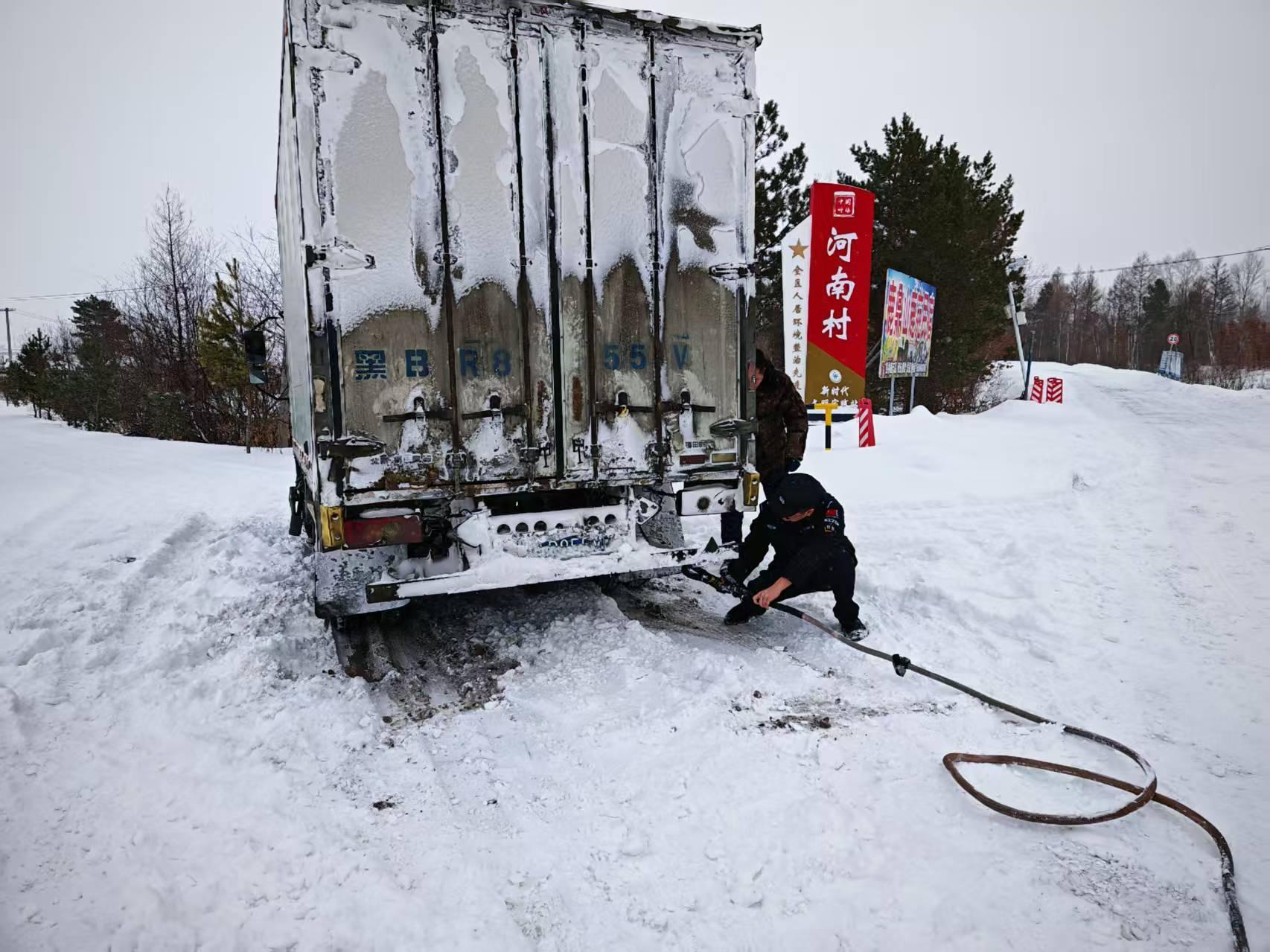 交警大隊接到G331國道河口執(zhí)勤點求助稱有一輛廂式貨車因積雪過厚、路面濕滑、不慎陷于深雪中無法移動,導(dǎo)致車輛被困。