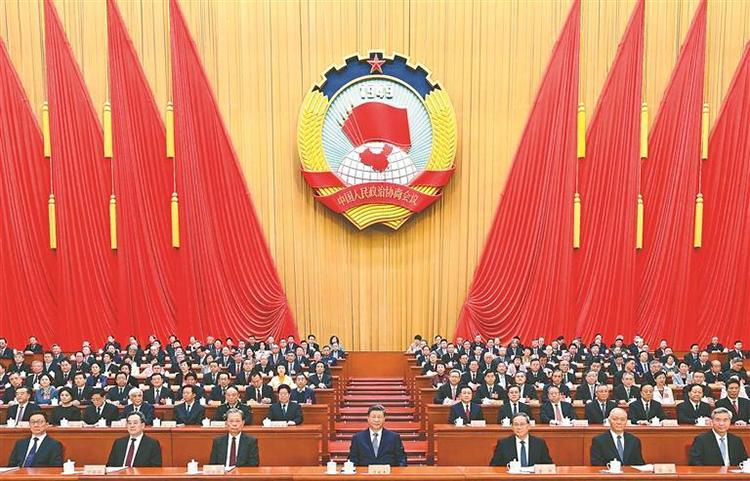 三月的北京,春?jiǎn)⑷A章。人民大會(huì)堂大禮堂燈光璀璨,氣氛隆重?zé)崃摇V袊?guó)人民政治協(xié)商會(huì)議會(huì)徽懸掛在主席臺(tái)正中,十面鮮艷的紅旗分列兩側(cè)。