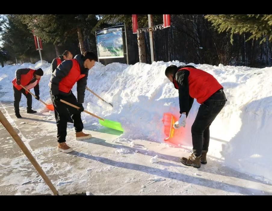 活動(dòng)現(xiàn)場(chǎng),青年志愿者們身著統(tǒng)一志愿服裝,精神飽滿、熱情昂揚(yáng),迅速進(jìn)入服務(wù)狀態(tài)。大家手持鐵鍬、雪鏟、掃帚等工具,明確分工、默契協(xié)作,將院內(nèi)區(qū)域、停車場(chǎng)及人行步道作為清掃重點(diǎn),對(duì)殘余積雪進(jìn)行集中清理。初春的林區(qū)依舊寒氣襲人,凜冽的寒風(fēng)沒(méi)有阻擋志愿者們的服務(wù)熱情,他們不畏嚴(yán)寒、干勁十足,彎腰清掃、奮力鏟除,細(xì)致清理每一處衛(wèi)生死角,全面排查并消除每一處出行安全隱患。與此同時(shí),志愿者們還對(duì)辦公樓公共區(qū)域進(jìn)行了全面衛(wèi)生整治,擦拭門窗、清掃地面、整理雜物,經(jīng)過(guò)一番緊張有序的勞作,原本積雪覆蓋、略顯雜亂的辦公大院變得干凈整潔、井然有序,切實(shí)為單位職工出行筑牢了安全防線,用暖心行動(dòng)為林海初春增添了一抹亮眼的志愿色彩。
