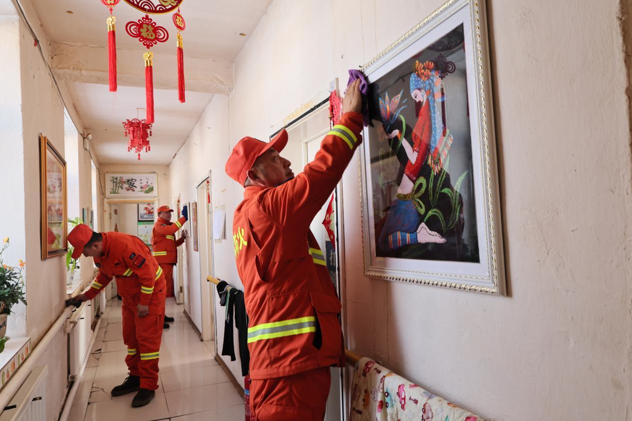 室外干勁十足,室內(nèi)溫情融融。志愿者們有的與老人促膝長(zhǎng)談、嘮起家常,詳細(xì)詢(xún)問(wèn)身體狀況和生活需求;有的拿起掃帚、抹布,細(xì)致清掃地面、擦拭門(mén)窗,把房間收拾得整潔明亮,用貼心服務(wù)溫暖老人心田。