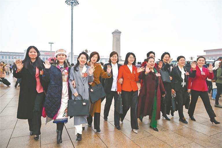 全國兩會(huì)期間,參加十四屆全國人大四次會(huì)議的黑龍江女代表意氣風(fēng)發(fā)步入會(huì)場。