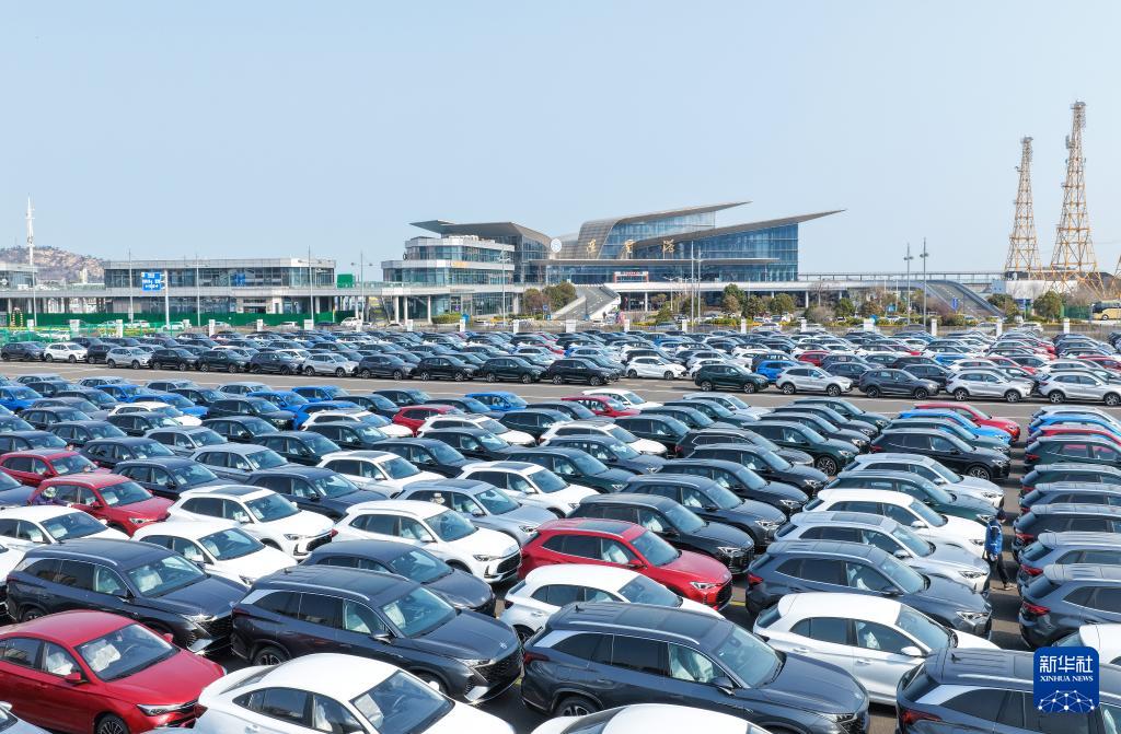 ??3月10日拍攝的江蘇省連云港港出口汽車堆場(無人機照片)。新華社發(fā)(王健民攝)