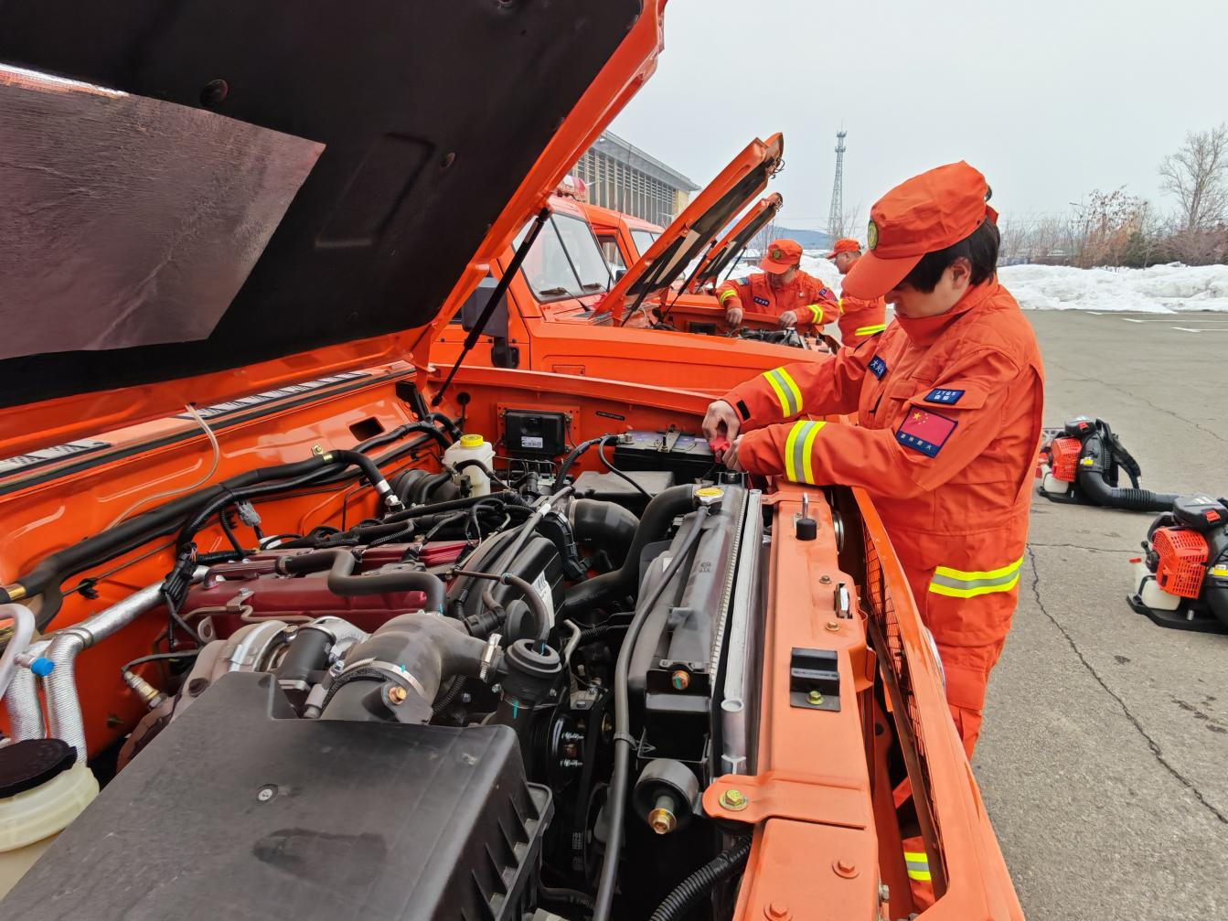 檢修人員對風(fēng)力滅火機、油鋸等撲火機具進行逐臺檢查、逐項維護。重點清理濾芯、檢修油路電路、更換易損配件、調(diào)試性能參數(shù),對存在故障隱患的機具及時維修更換,確保所有裝備性能穩(wěn)定、狀態(tài)良好。全面排查撲火運兵車的發(fā)動機、制動系統(tǒng)、輪胎、燈光及隨車裝備配備情況。同時對撲火機具、車輛進行分類存放、統(tǒng)一管理,認真登記造冊、完善臺賬,做到數(shù)量清、狀態(tài)明、責(zé)任實,全面提升防火裝備規(guī)范化管理水平,為快速響應(yīng)、高效處置火情提供堅實物資支撐。