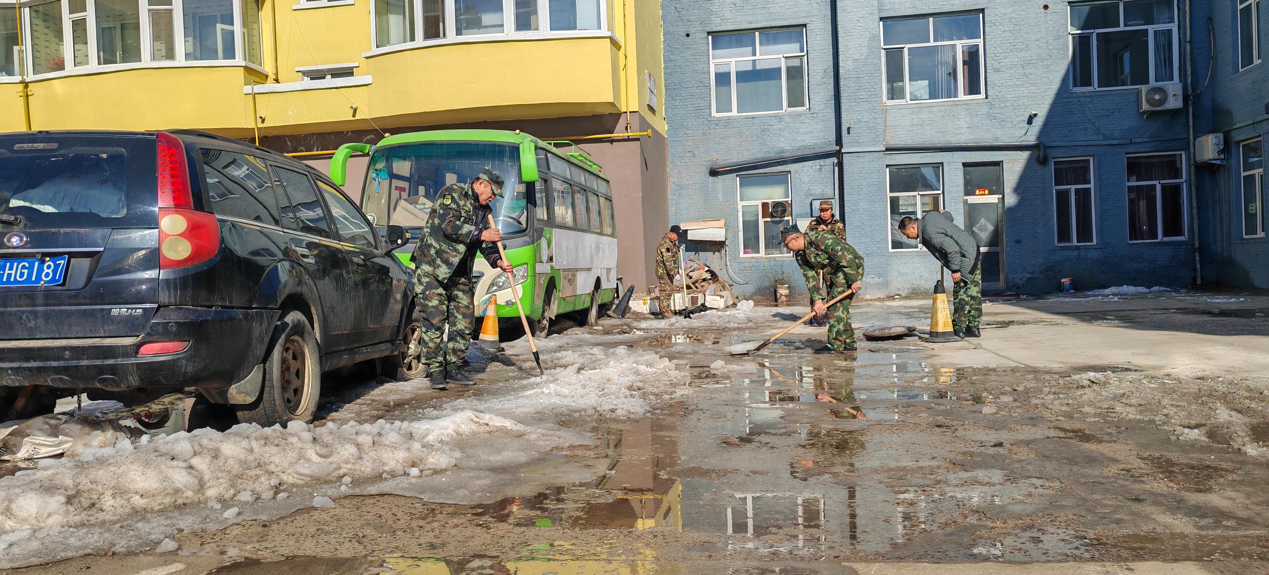 大家主動擔(dān)當(dāng),手持鐵鍬、掃帚等工具,分工協(xié)作、有序作業(yè)。認(rèn)真鏟除樓前屋后的堅冰,細(xì)致清掃樓頂殘雪,不放過一處死角盲區(qū)。盡管春寒尚存,職工們依舊干勁十足,以飽滿的熱情投入到清理工作中。