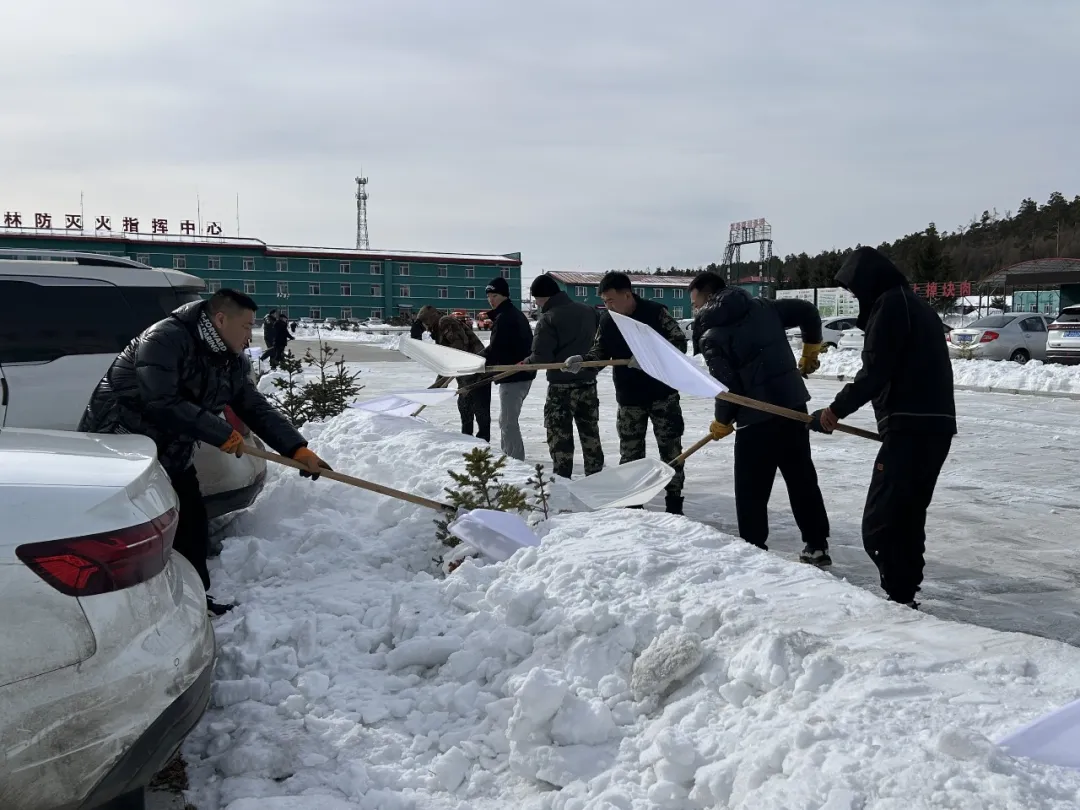 森林消防二大隊組織人員全面清理營區(qū)主要道路積雪(侯高洋 攝)