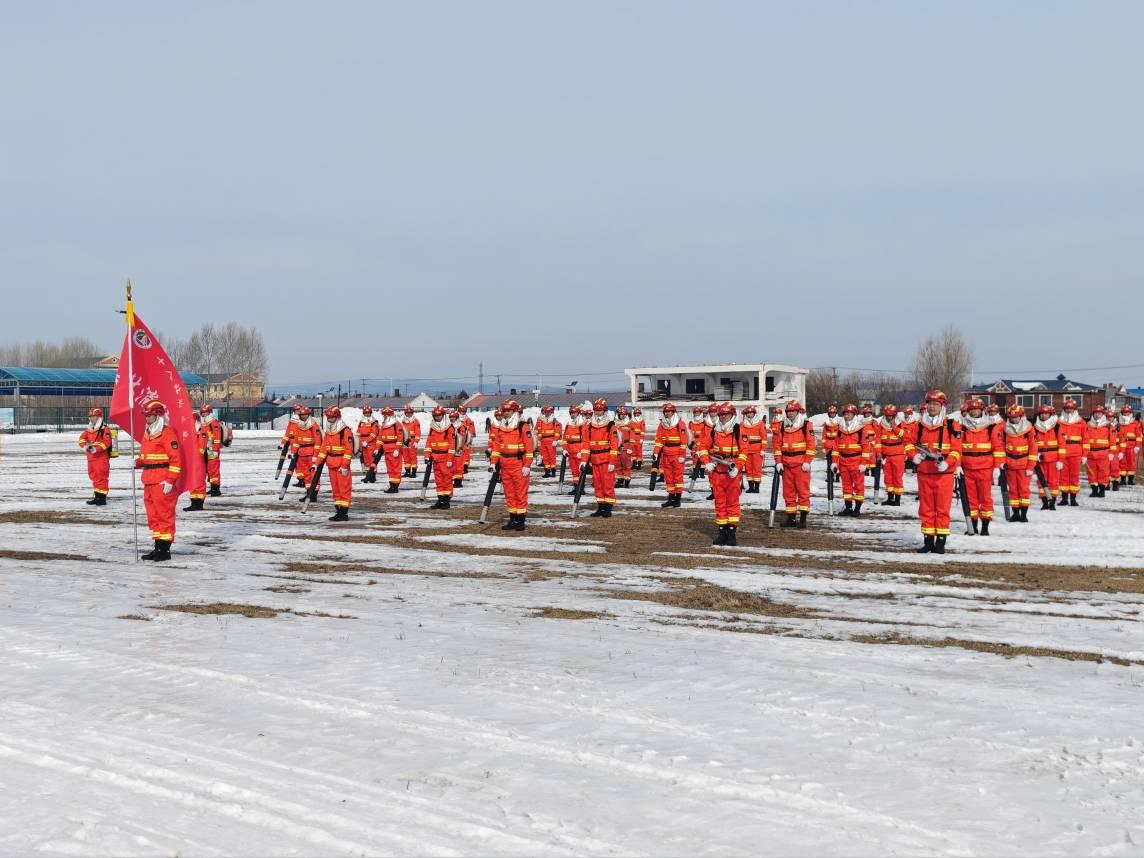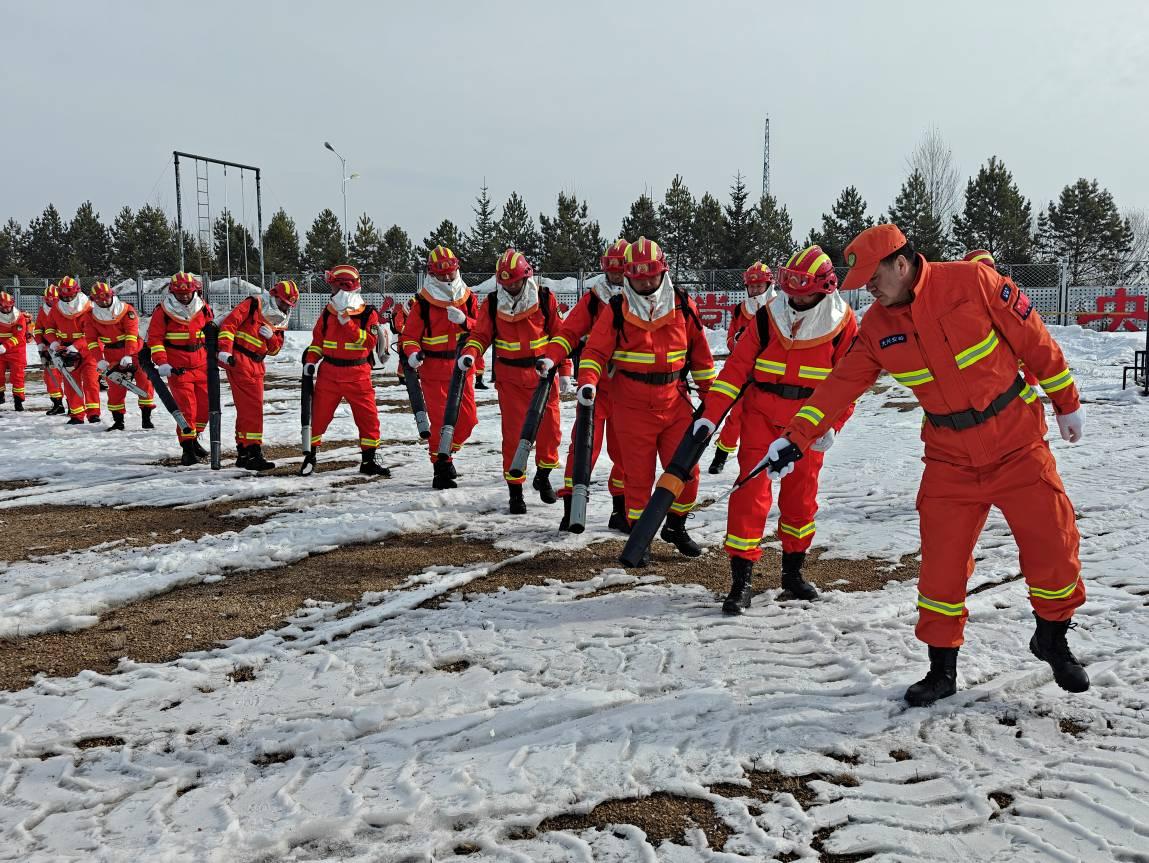 此次演練重點圍繞風(fēng)力滅火機協(xié)同作戰(zhàn)展開。在接到局森防指發(fā)出指令后,森林消防大隊迅速集結(jié)、整裝出發(fā),全體隊員按照小隊?wèi)?zhàn)術(shù)編組,攜帶機具對模擬火線進行合圍撲打。從集結(jié)到合圍、從協(xié)同到配合,整個過程緊張有序、銜接緊密,橙色身影在白色雪地上格外醒目,展現(xiàn)了專業(yè)隊伍快速響應(yīng)的過硬素質(zhì)和良好的戰(zhàn)備狀態(tài)。