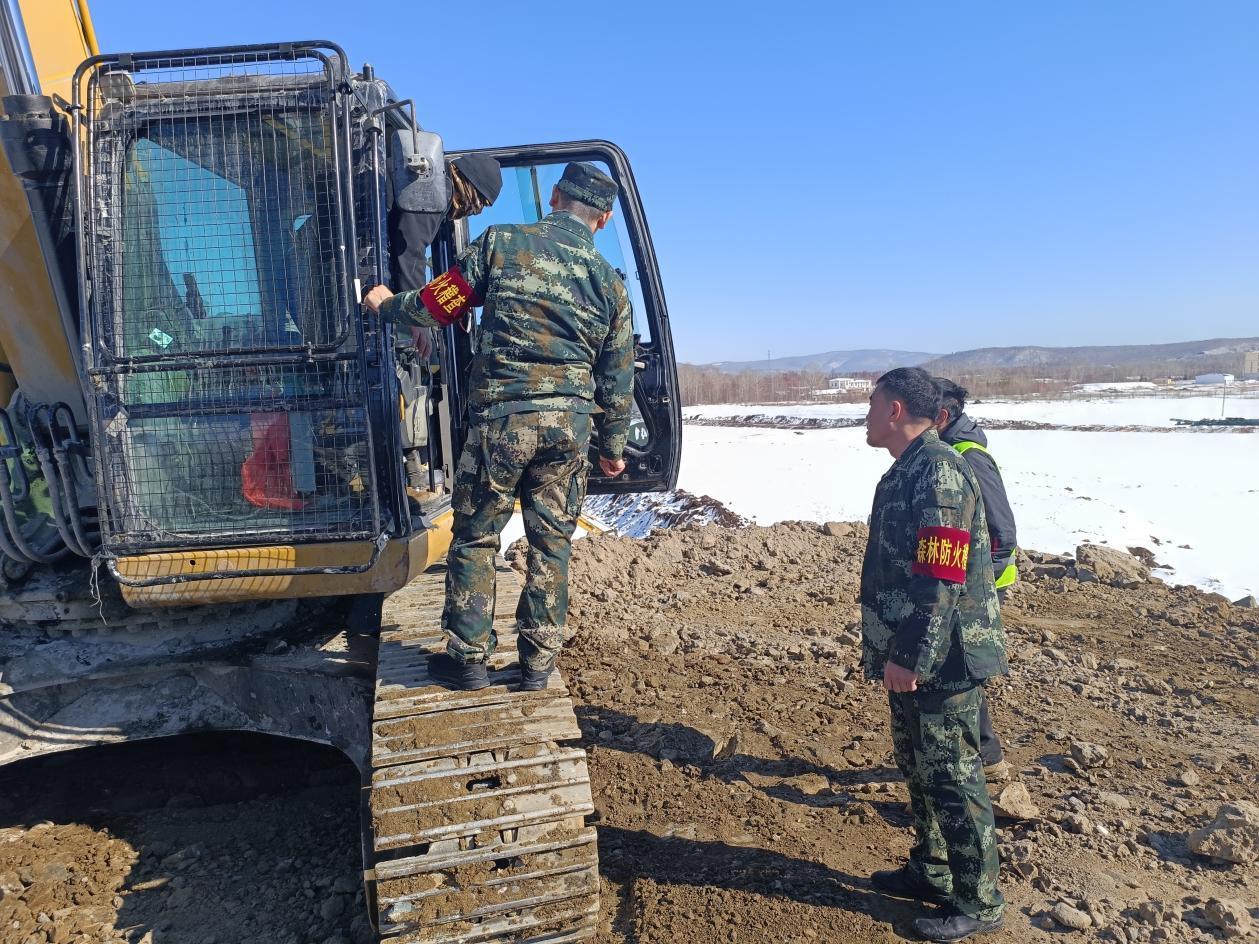 林場工作人員正在排查大型工程機(jī)規(guī)范作業(yè)情況(田嘉鑫 攝)