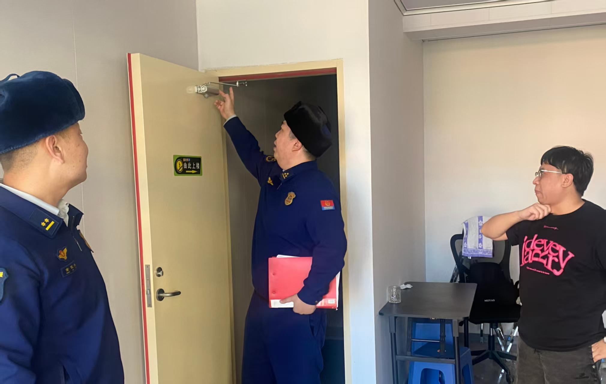 檢查組現(xiàn)場(chǎng)檢查防火門(mén)是否完好好用(胡春磊 攝)