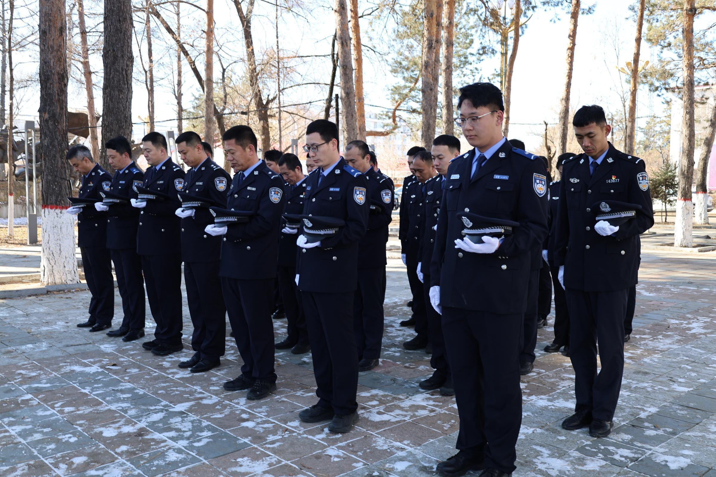 全體民輔警身著規(guī)范警服,精神抖擻、隊列整齊,懷著無比崇敬的心情肅立在紀念碑前,整個現(xiàn)場氛圍莊重而肅穆。
