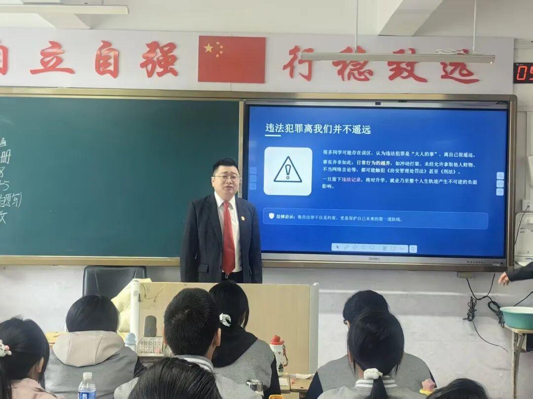 深入班級,互動答疑解惑。集中宣講結(jié)束后,趙世奇走進各班級,開展小范圍、針對性更強的法治輔導(dǎo)。根據(jù)不同班級學(xué)生的年齡特點以及日常相處中暴露出的微小矛盾、行為偏差,進行“點對點”法律指導(dǎo)。在班級課堂上與學(xué)生近距離圍坐交流,耐心解答學(xué)生提出的法律疑問,并結(jié)合班級實際發(fā)生的典型小事,將法律知識細化到學(xué)習生活的具體場景中。這種面對面、心貼心的互動方式,讓法治教育更加鮮活、可感,真正實現(xiàn)了普法宣傳全覆蓋、無死角。